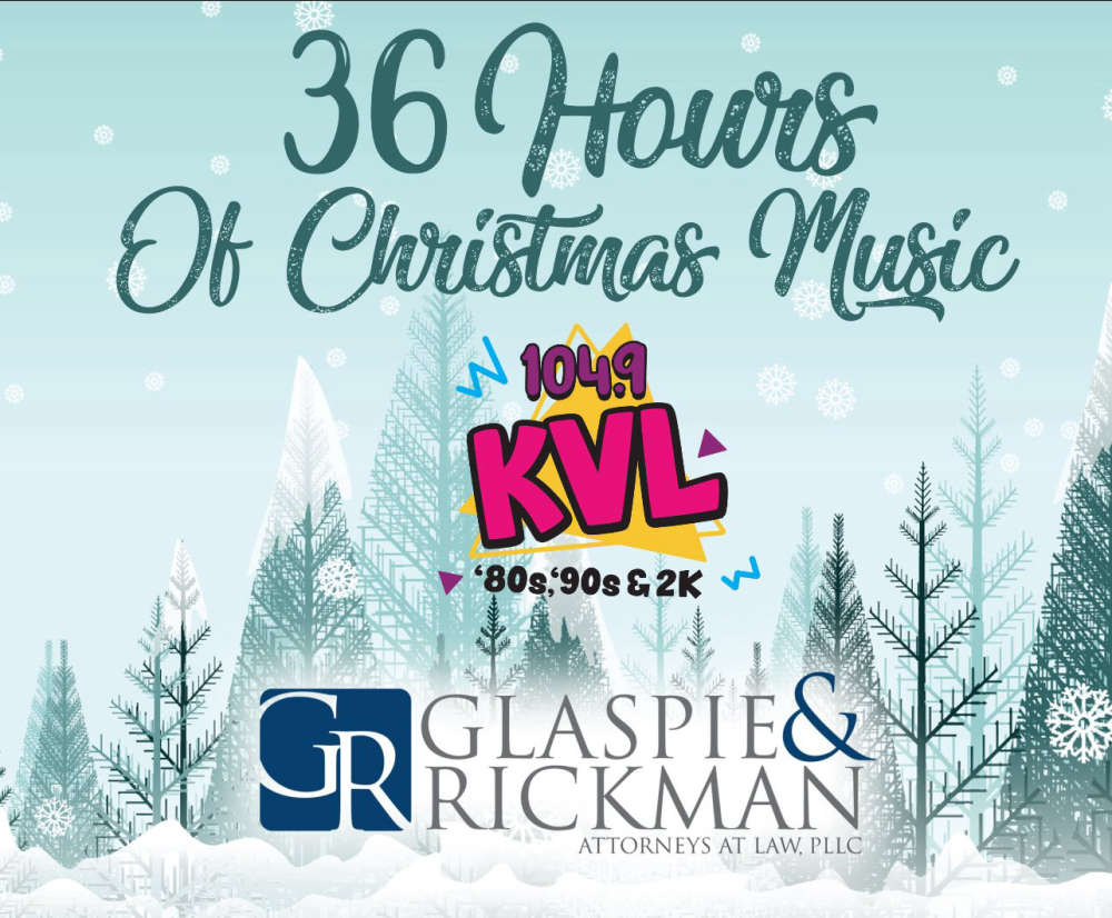🎶 The 36-Hour Christmas Music-thon begins Christmas Eve at 12 noon, brought to you by Glaspie & Rickman, right here on KVL!